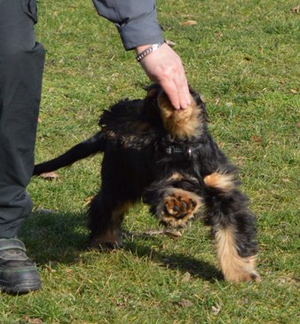 geben, bevor er sich vom Hund entfernt. ODER: Nach einer