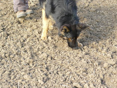 Hilfe seine Wurst vom Acker. Noch liegt in jeder Fusstrappe ein Stück