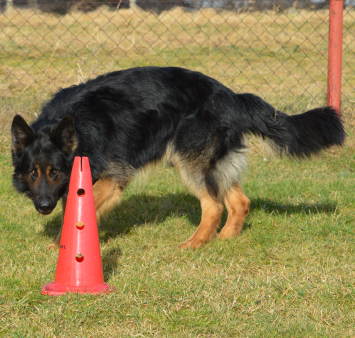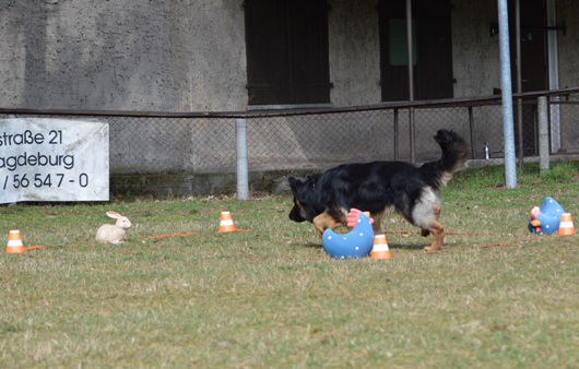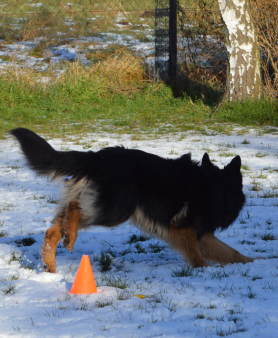 Laufen um die Pylone vorgestern auf dem Hof nahezu perfekt geklappt hat,