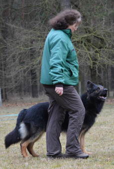 verhält, wenn der Hundeführer 2 bis 3 Schritte