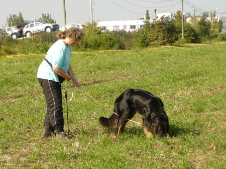 dem Acker um ihnen die Grundbegriffe des Fährtens beizubringen.