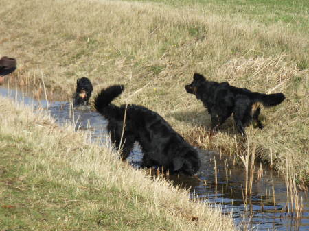so genießt er nun das Wasser, zumal er in diesem Jahr noch unwahrscheinlich viel Unterwolle hat - da hilft alles kämmen nichts. |