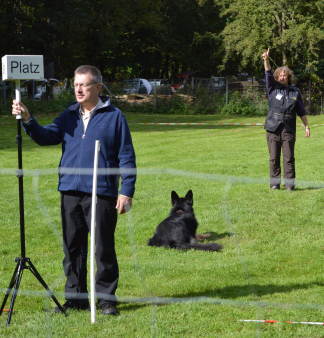 der Hundeführer ca. 5m von seinem Hund. Der Steward