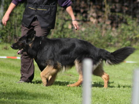 hin. Auf Anweisung wird der Hund abgerufen. Die maximale