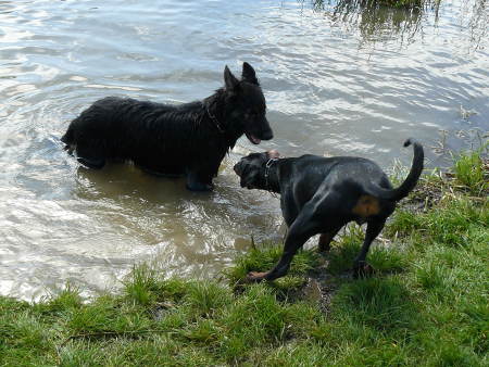 sind in Knauthain zum Rally Obedience Turnier - da findet das abbaden