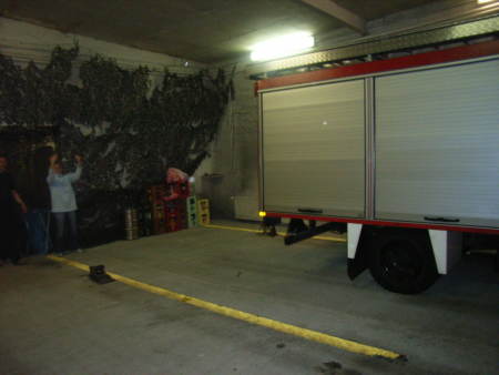 Schlauch Holzflammen löschen, es gab eine Tombola für die