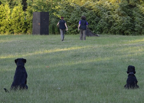 Hundeführer außer Sicht - 1 Minute liegen in einer Gruppe mit Abrufen