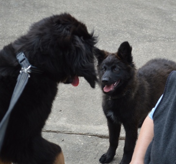 beiden Minimonster mussten sich erst mal an das große schwarze Hundekind