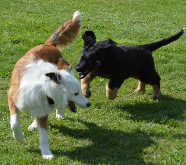 dass er heute - nach der Prüfung in Grasleben - in dem knapp 6 Monate alten Bordercolliebuben J.R. einen Spielpartner findet - hätte funktionieren