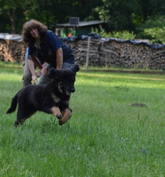 aus der Hand nehmen und ganz kurz halten geübt, also Hundekind ins sitz