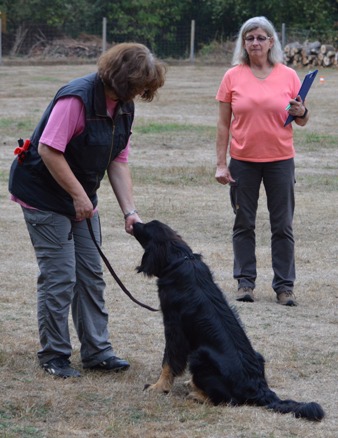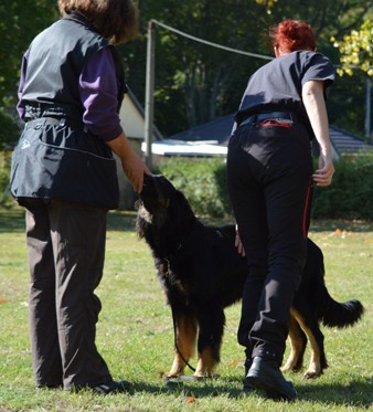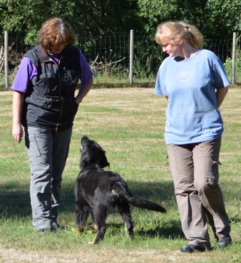 stellt sich der Hundeführer vor seinen Hund und bringt