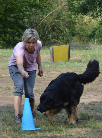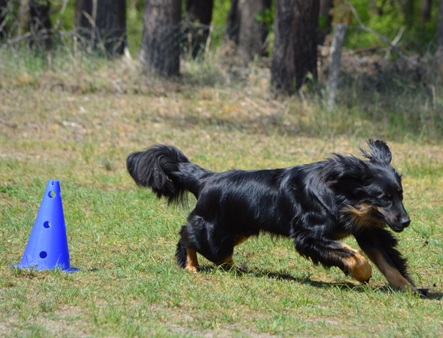 Anweisung wird der Hund um eine 10 m entfernte Pylone
