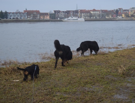 der Fähre hüpfen bereits zwei Hunde rum ;o(( Morgens halb