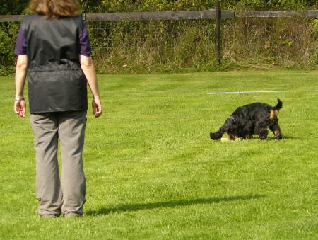 entfernt sich ca. 20 m und ruft seinen Hund nach