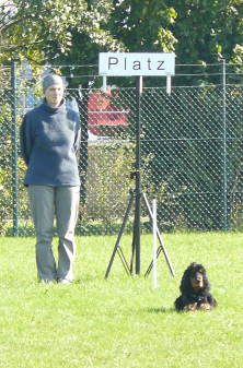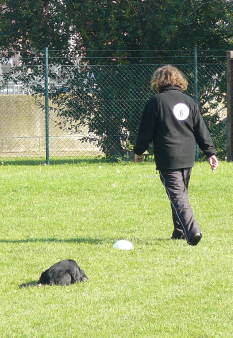 entfernt sich ca. 20 m und ruft seinen Hund nach