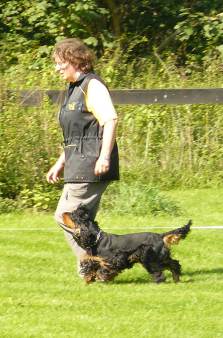 der Hundeführer ca. 10m von seinem Hund. Der Steward