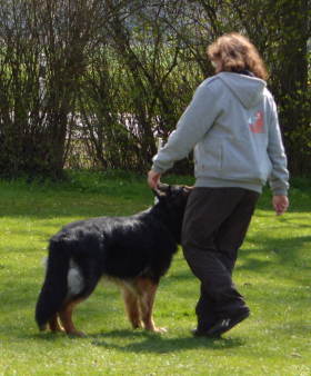 verhält, wenn der Hundeführer 2 bis 3 Schritte