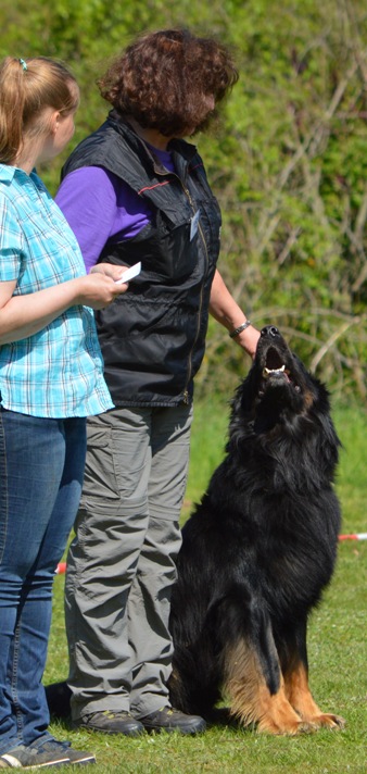Die Hundeführer werden dann aufgefordert zu ihren Hunden