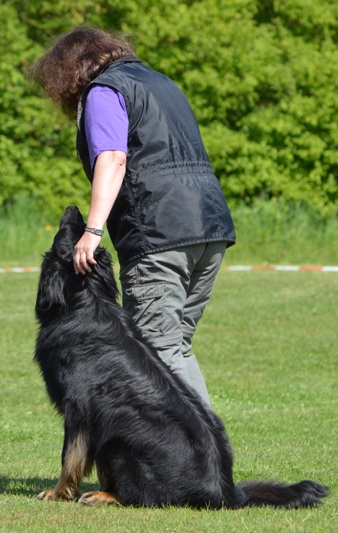 Blickrichtung zum Hund stehen. Der Hundeführer wird dann