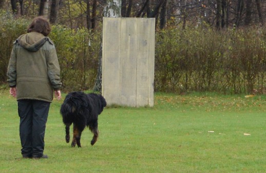 Hund auf eine 5 m entfernte Markierung zu zu gehen, diese zu