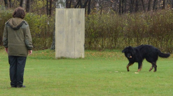 dem Hund auf Anweisung das Kommando zum bringen und zurück