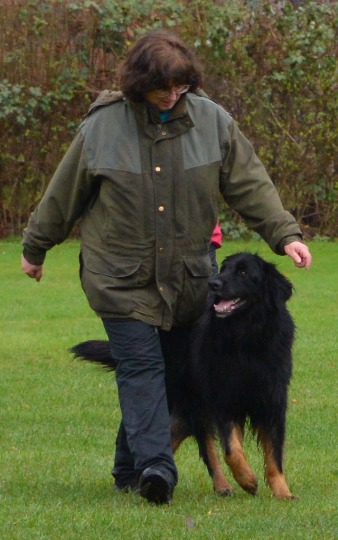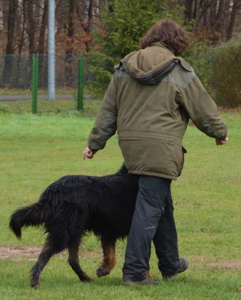 verhält, wenn der Hundeführer 2 bis 3 Schritte