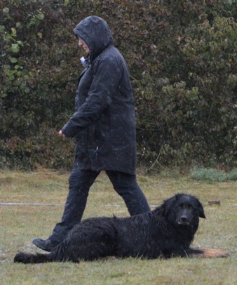 der Hundeführer ca. 10 m von seinem Hund und dreht sich