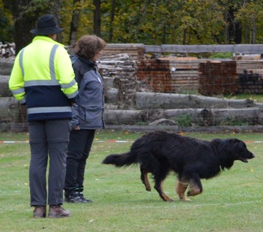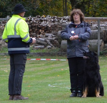 voneinander aus. Der Hundeführer wird angewiesen mit seinem