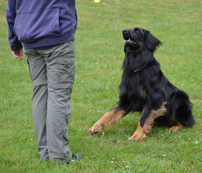 Oskar "sitz - platz - steh" trainiert ohne ihm dafür Handzeichen zu