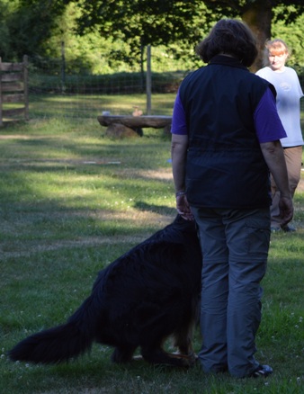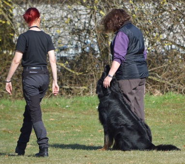 Hundeführer verlässt seinen im Abstand von 2 - 4 m zur