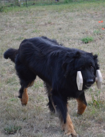 der nächste Versuch läuft ganz genau so, bis ich ihm das Apportel ein paar mal neben die Mulchsäcke werfe, danach klappt das bringen auch in Richtung Carport