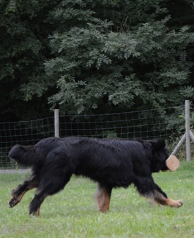 springen und das Holz das er holen sollte lag in deren Richtung - es