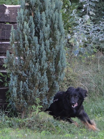 durch den Wald flitzt Oskar wie doof und verbellt sein gefundenes Opfer