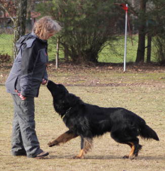 kleinen Führerhilfe sitzt er schön vor und am Kuss für's "Fuß" Kommando