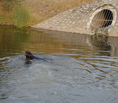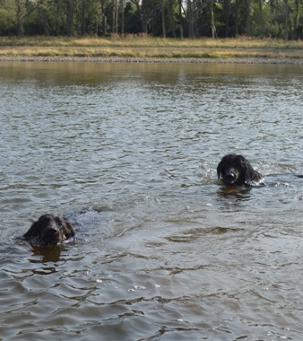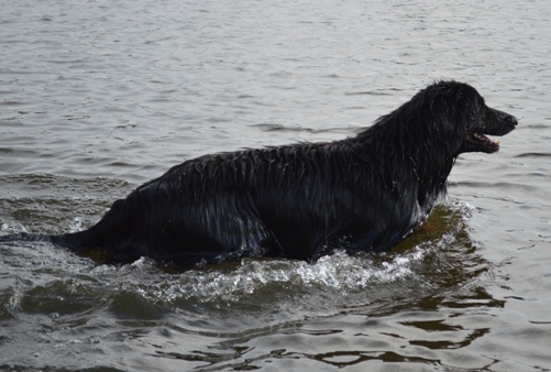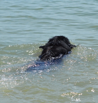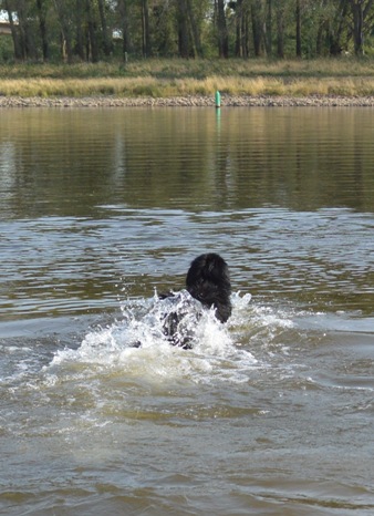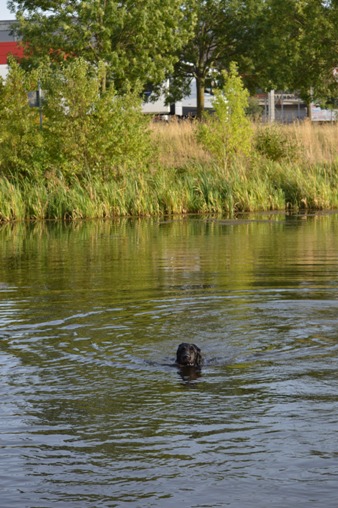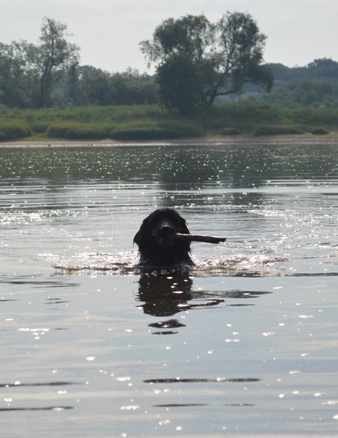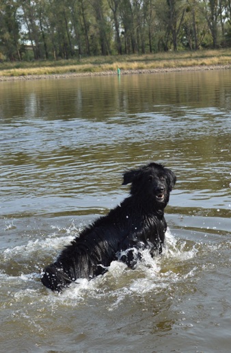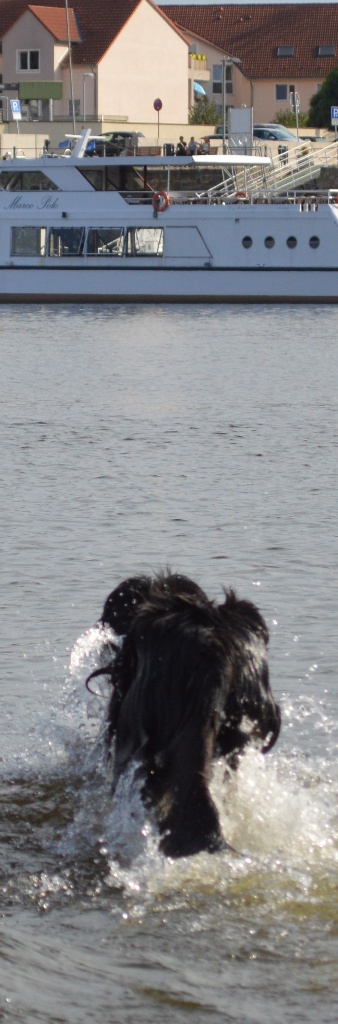 Oskar schwimmt und Stöckchen holt - die ihm noch keiner streitig macht
