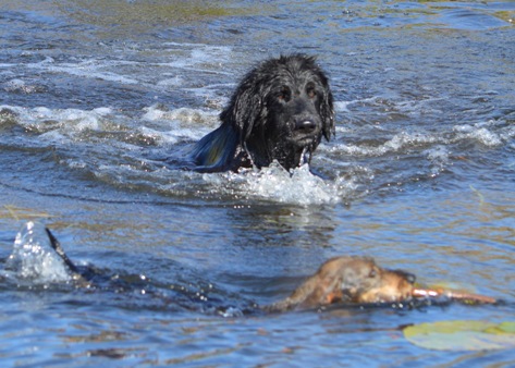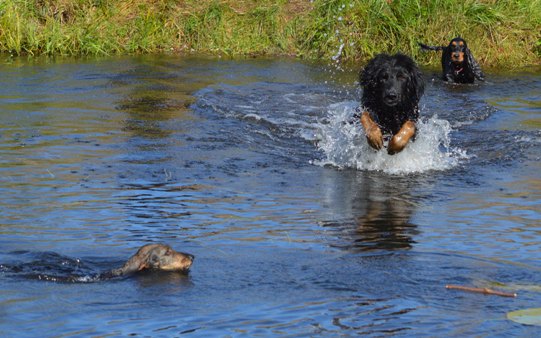 dem See zu holen - er musste aufpassen, dass seinen neue Dackelfreundin