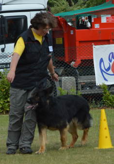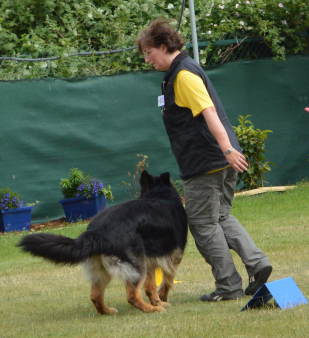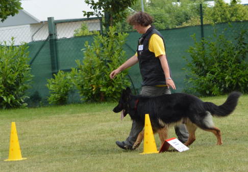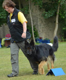 Wenn Gordon zum Ende hin auch immer unaufmerksamer wurde - er hat alles mit gemacht und so belegten wir mit 99 Punkten in glatt 2 Minuten und einem vorzüglich den 4. Platz von 13 Hunden ;o)) Nun darf also auch Gordon in der eins starten - mir gruselt es schon davor den unbeweglichen Kerl bei den MSÜ (Mehrschildübungen) links und rechts und ganz im Kreis und alles auf einmal zu drehen - das wird ein Spaß ..... für die Zuschauer ;o//