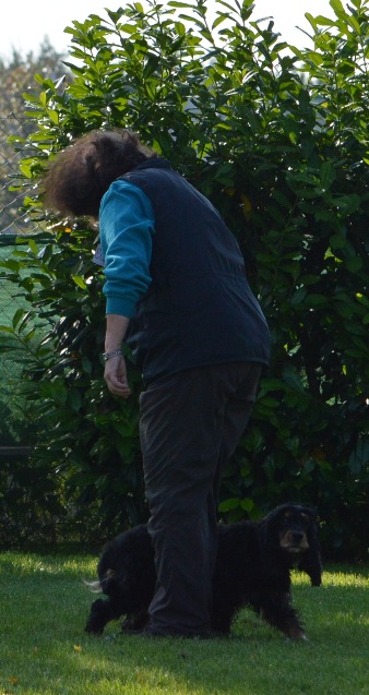 Steh, Hund umrundet Hundeführer |